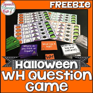 2) Next, we have Halloween WH Question Game by Speech Therapy Fun with Jennifer. Practice the Who’s, What’s Where’s and When’s with this Halloween-themed game!
