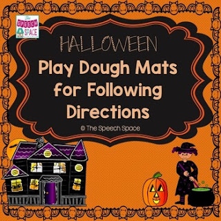 1) First up is Halloween Play Dough Mats for Following Directions by The Speech Space. Play Dough is one of my favorite things to use in therapy because the kids LOVE it. I had so much fun creating this Halloween freebie for you, and I hope you love it, too!