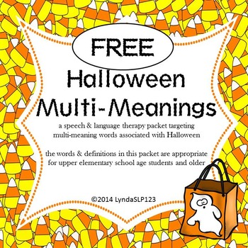 1) Halloween Multiple Meanings from LyndaSLP123. Work on Halloween-themed words with your upper elementary (& older) kiddos with this fun activity.