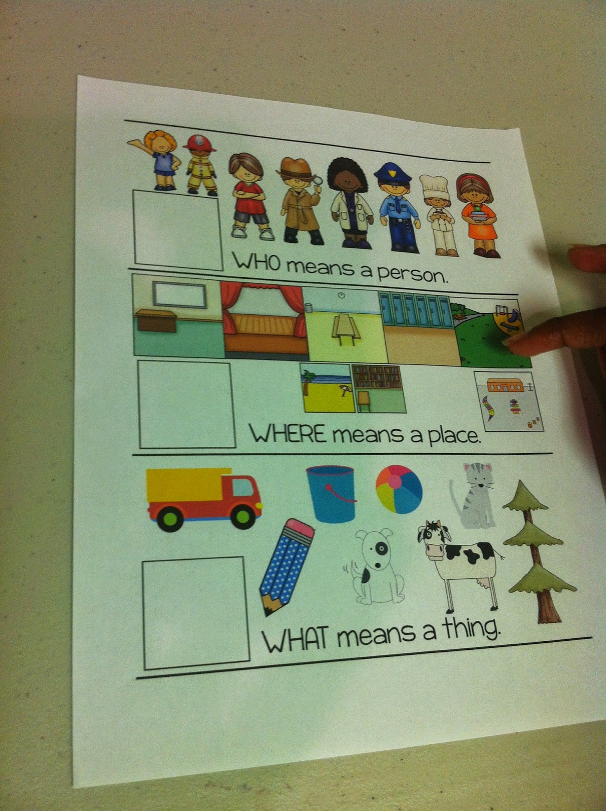 This week, I was loving using WH Questions Interactive Book by Speechy Musings. I actually haven’t had time to laminate it and put it together as a book yet, but it’s on my list of things to do! One of my clients has had a really tough time with WH-questions and I was running out of ideas- until I found this book! I love how there are visuals to review the concepts, and that additional visuals are displayed at the bottom of each page. The set up is the same (ie. who is in where with what?) on each page, with I find to be really useful. Here is a peek into my speech room this week as I used this great product: